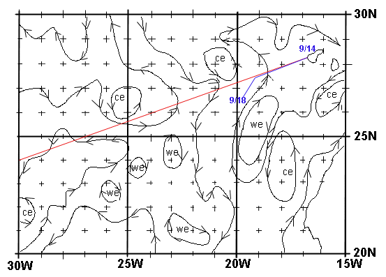 the area. Her path is plotted in blue. As you can see the cold eddy