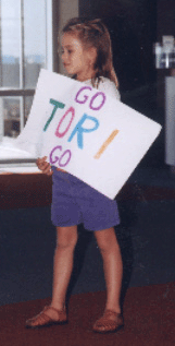 As Mr. Shoup could tell you, Katy, I had to work on the boat a lot this summer. As a result, I didn't get much time to train. I did row on the Ohio River and lifted weights whenever possible. Sometimes it is very exciting to be in the middle of the ocean and be able to see things in a new way. But, when the water is big, I feel very small and would like to see land. Tori