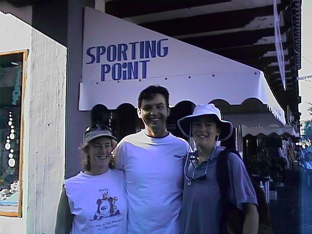 Damian in front of his shop at Sporting Point with Louise and Noreen.